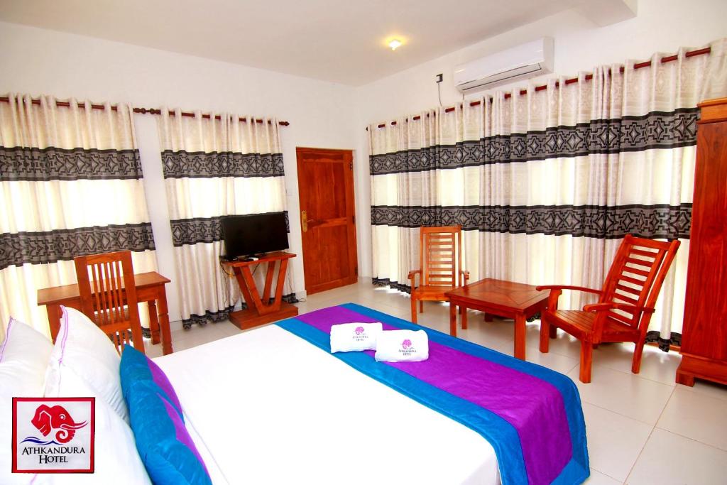 Nestled amidst the lush greenery of Habarana, Athkandura Hotel emerges as a serene sanctuary, offering an exquisite blend of comfort and tranquility. As you step into its welcoming embrace, a sense of serenity envelops you, gently transporting you away from the bustle of everyday life. The hotel's charming architecture seamlessly merges with the natural beauty of its surroundings, creating an enchanting ambiance that invites relaxation and rejuvenation.