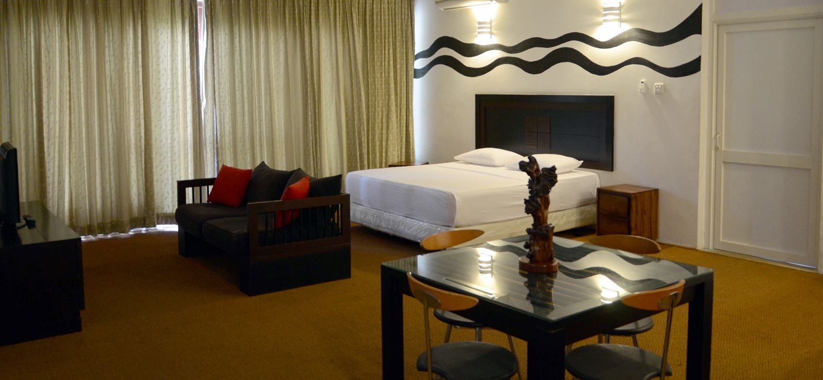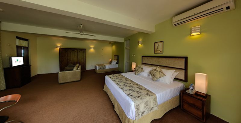 The Deluxe Triple Room is a perfectly sized room for two people that provides luxury and comfort, complete with a King-sized bed. The room’s balcony provides a breathtaking view of the greenery in the surrounding areas and lets you breathe in the fresh air from the hills as you take in the scenery while sipping a hot cup of tea or coffee.