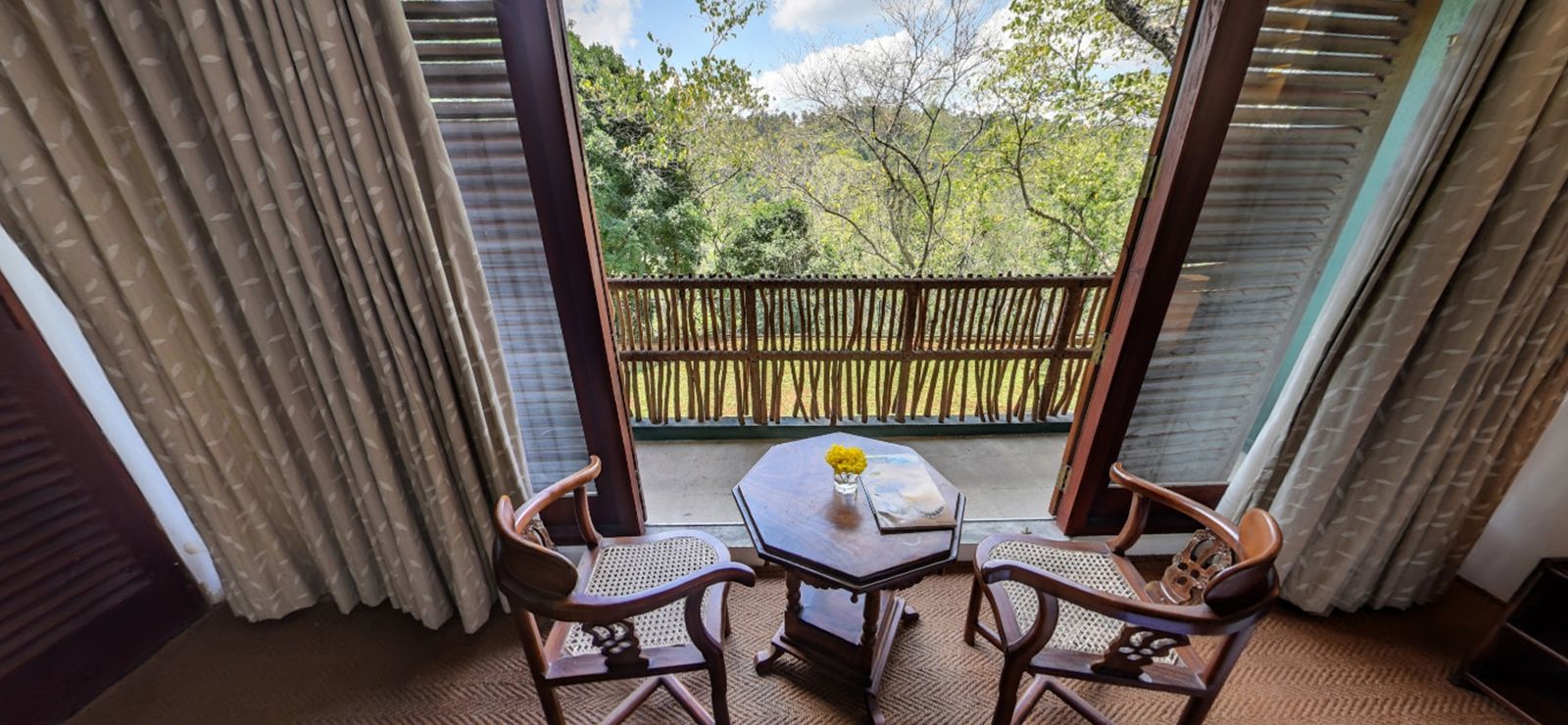 The Deluxe Double Room is a perfectly sized room for two people that provides luxury and comfort, complete with a King-sized bed. The room’s balcony provides a breathtaking view of the greenery in the surrounding areas and lets you breathe in the fresh air from the hills as you take in the scenery while sipping a hot cup of tea or coffee.