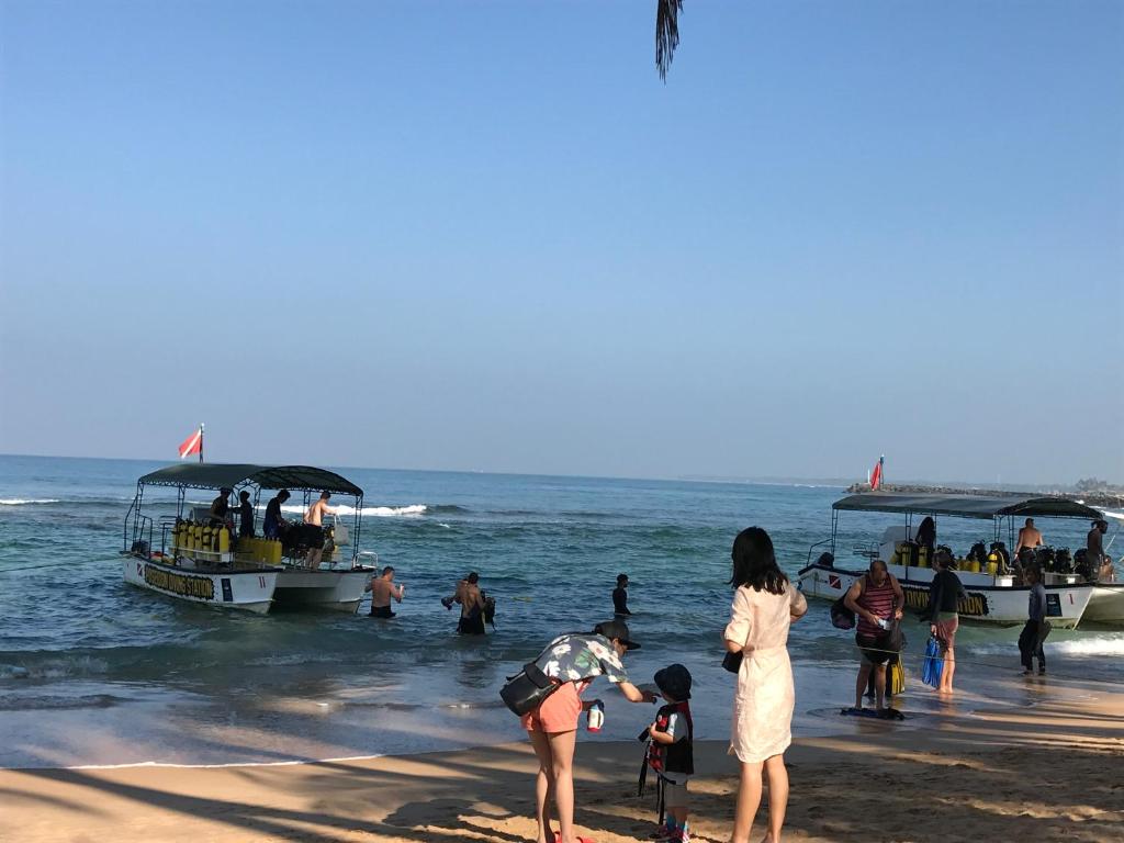 Welcome to Bliss Apartment Hikkaduwa, your perfect retreat situated just steps away from the stunning Hikkaduwa Beach. Our hotel embodies a warm and friendly atmosphere, ensuring you feel instantly at home. With a modern and elegant design, our accommodation offers a delightful blend of comfort and style. As you step into our premises, you'll be greeted by a lush garden, providing a serene setting for relaxation. The availability of free private parking guarantees convenience during your stay. Unwind in our shared lounge or take in the breathtaking views from our terrace, where you can immerse yourself in the tranquility of your surroundings. Our 24-hour front desk staff is always ready to assist you, ensuring your needs are met with utmost care and efficiency. For those traveling from afar, our airport transfer service makes your journey seamless. The shared kitchen is equipped with everything you need, and free WiFi keeps you connected throughout your stay. Each of our air-condit...