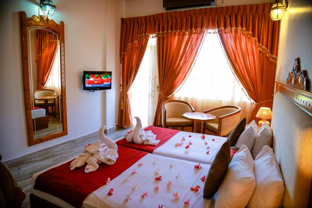 Fitted with tiled flooring, air-conditioned rooms are furnished with a wardrobe, a satellite TV, minibar and seating area. The en suite bathroom comes equipped with a hairdryer, bathtub or shower and free toiletries.