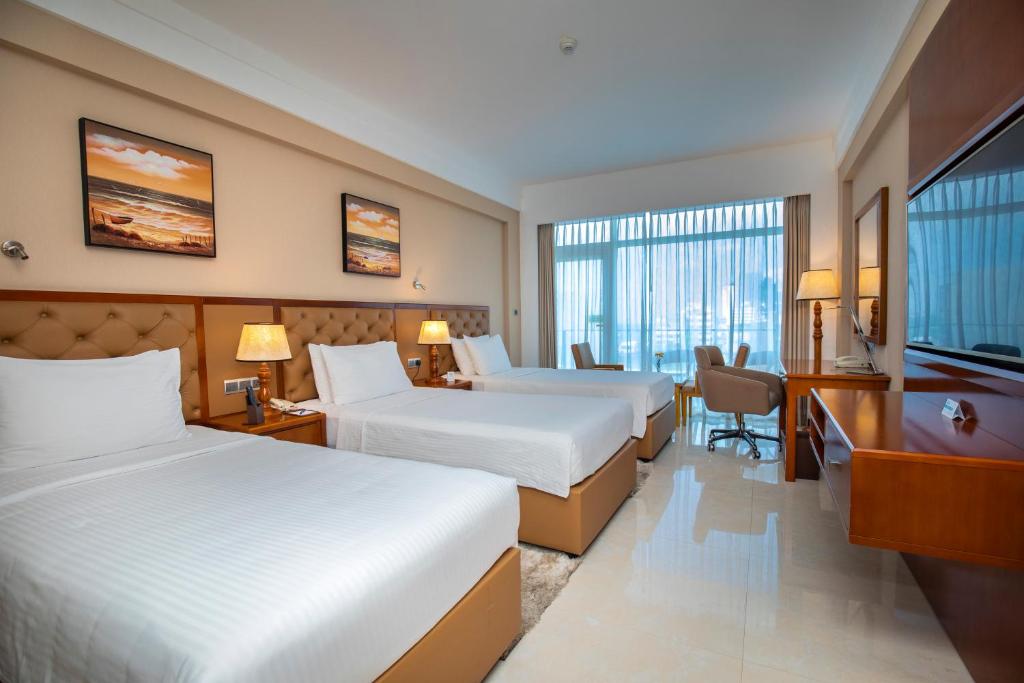 Our elegantly designed, air-conditioned rooms are a sanctuary of comfort and sophistication. Each room is thoughtfully appointed with modern amenities, including a desk, kettle, minibar, safety deposit box, flat-screen TV, and a private bathroom with a bidet. Guests can unwind on their private balconies, taking in the stunning views of Colombo. We provide plush linens and towels to ensure a restful night’s sleep. For those seeking relaxation and rejuvenation, our hotel features a luxurious hot tub. Located near popular attractions such as Bambalapitiya Beach, Kollupitiya Beach, and Milagiriya Beach, Marino Beach Colombo is the perfect destination for both leisure and business travelers. The Diyawanna Oya Seaplane Base Airport is conveniently situated just 9 km away, offering easy access to our hotel. Experience the epitome of elegance and hospitality at Marino Beach Colombo.