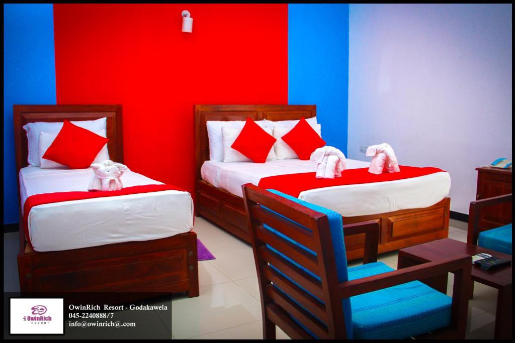 Welcome to OwinRich Resort, an idyllic tropical haven surrounded by lush greenery. Our homely rooms, with private balconies, offer a comfortable retreat amidst nature's beauty. Whether you wish to explore Udawalawa National Park and Sinharaja Forest Reserve or relax by our outdoor pool, our resort caters to both adventure-seekers and relaxation enthusiasts. Delight your taste buds at Fox Jungle Restaurant with a diverse range of local, Continental, and Thai dishes, and savor barbecue delights upon request. Our attentive staff can assist with tour arrangements, car rentals, and offer services such as currency exchange, laundry, and babysitting. Embrace the tranquility and warm hospitality of OwinRich Resort for an unforgettable getaway.