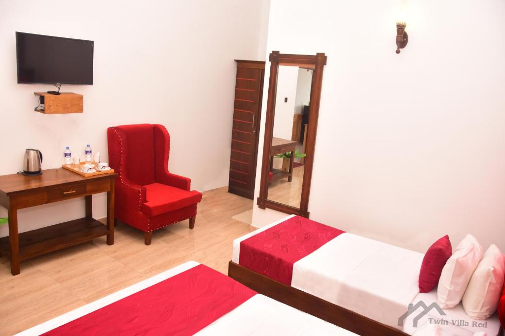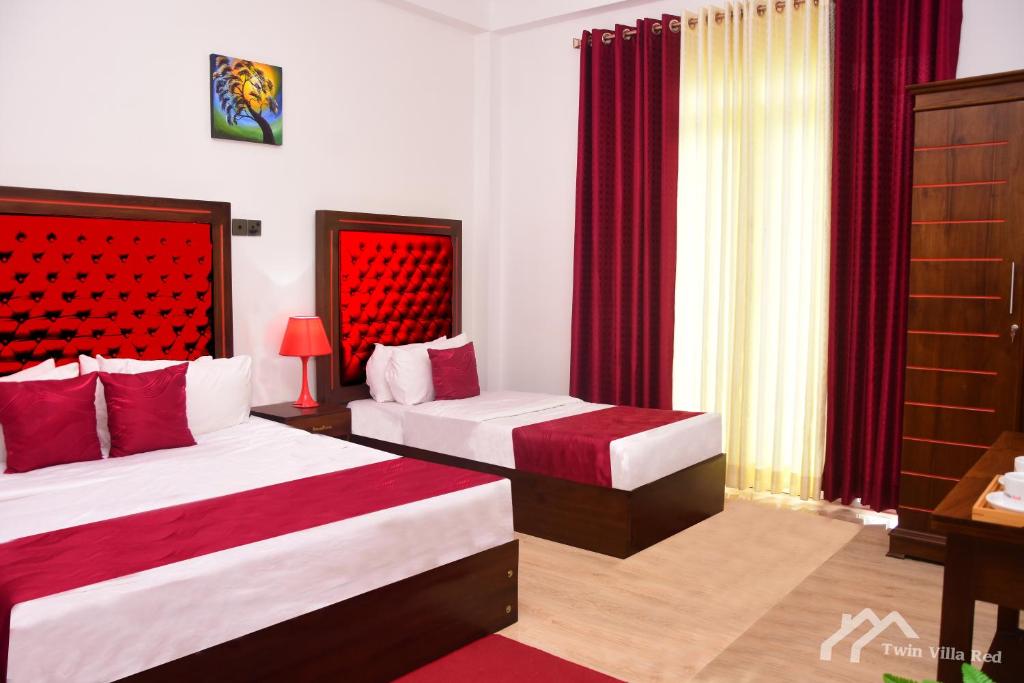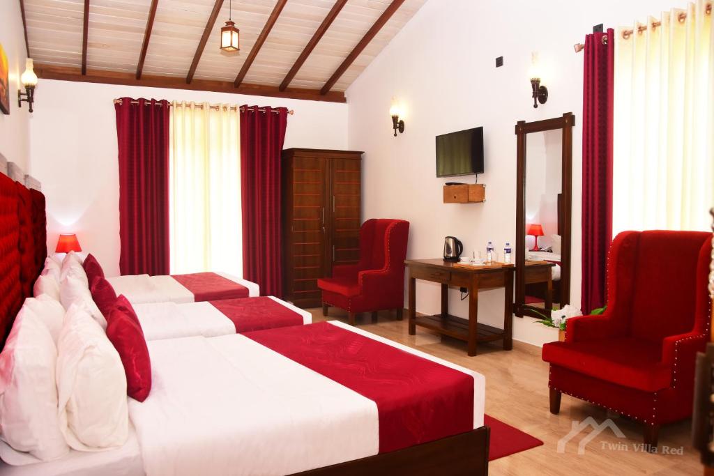 Set in the heart of scenic Nuwara Eliya, Twin Villa Red is a stylish mountain-view villa retreat blending modern comfort with serene hill country charm. With 9 well-appointed rooms, it’s perfect for couples, families, or small groups looking to enjoy cool climates, beautiful landscapes, and warm Sri Lankan hospitality. Guests can relax in spacious rooms, enjoy hearty breakfasts and on-site dining, and explore nearby attractions like Gregory Lake and Hakgala Botanical Garden.